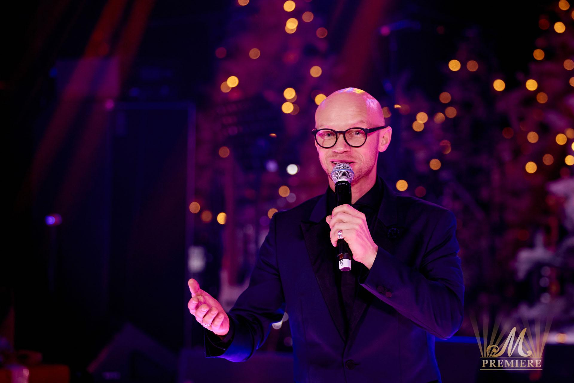 The main host of the evening is the charismatic showman and TV-presenter Dmitry Khrustalev. He dance between joke telling, storytelling, song and an improvised play during the night.