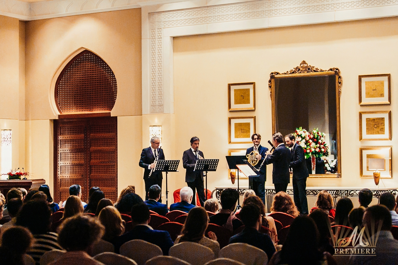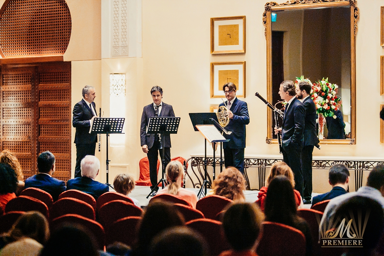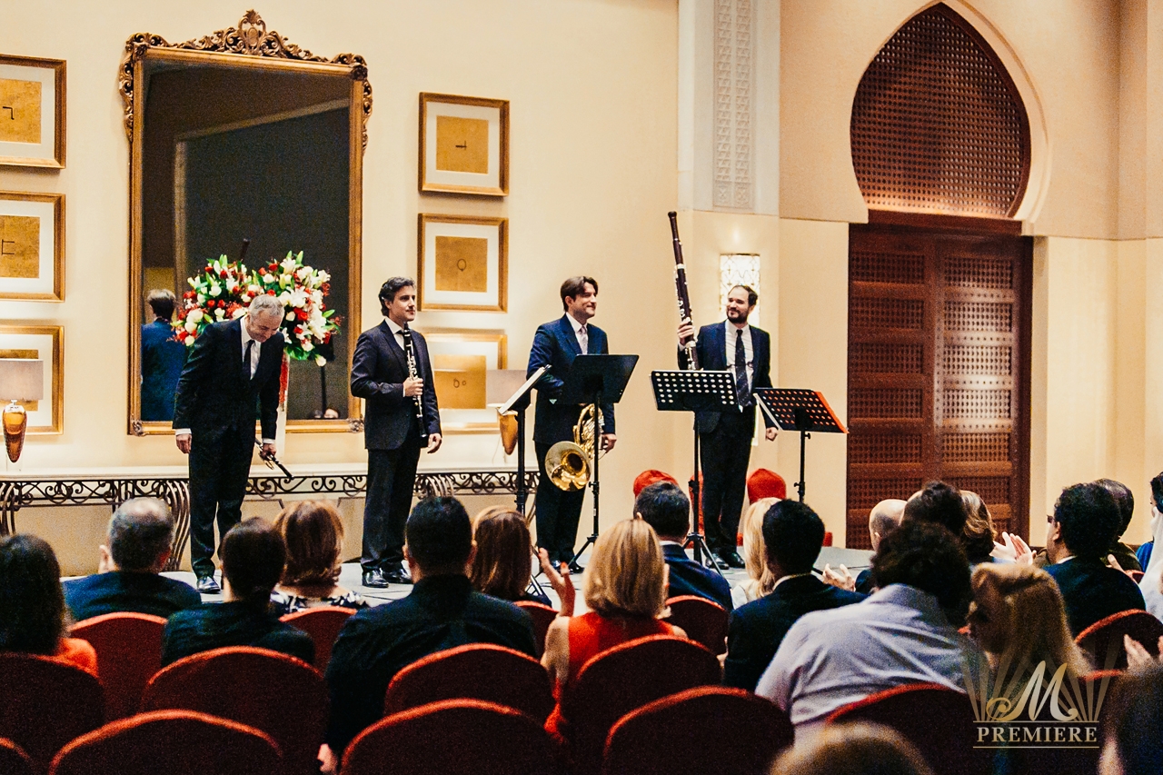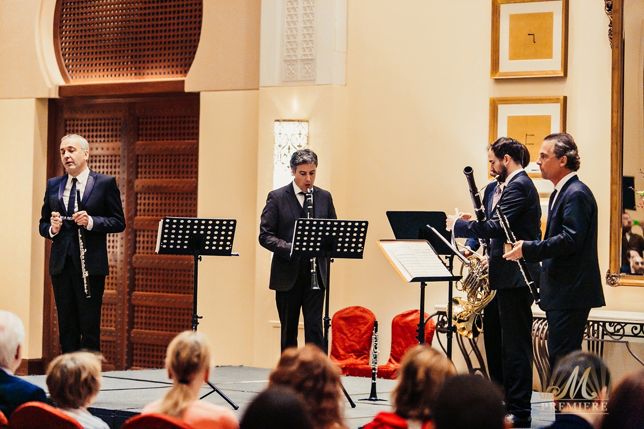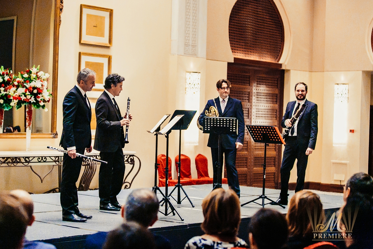 The concert programme included Mozart’s Allegro-Andante-Menuetto, Rossini’s sonata for winds in fa major and also the Allegro moderat0-Andante-Rondo. The members of the Quintet as the most remarkable and brilliant French instrumentalists delivered to Dubai the unique experience of the French classical school that city has never heard and seen before.